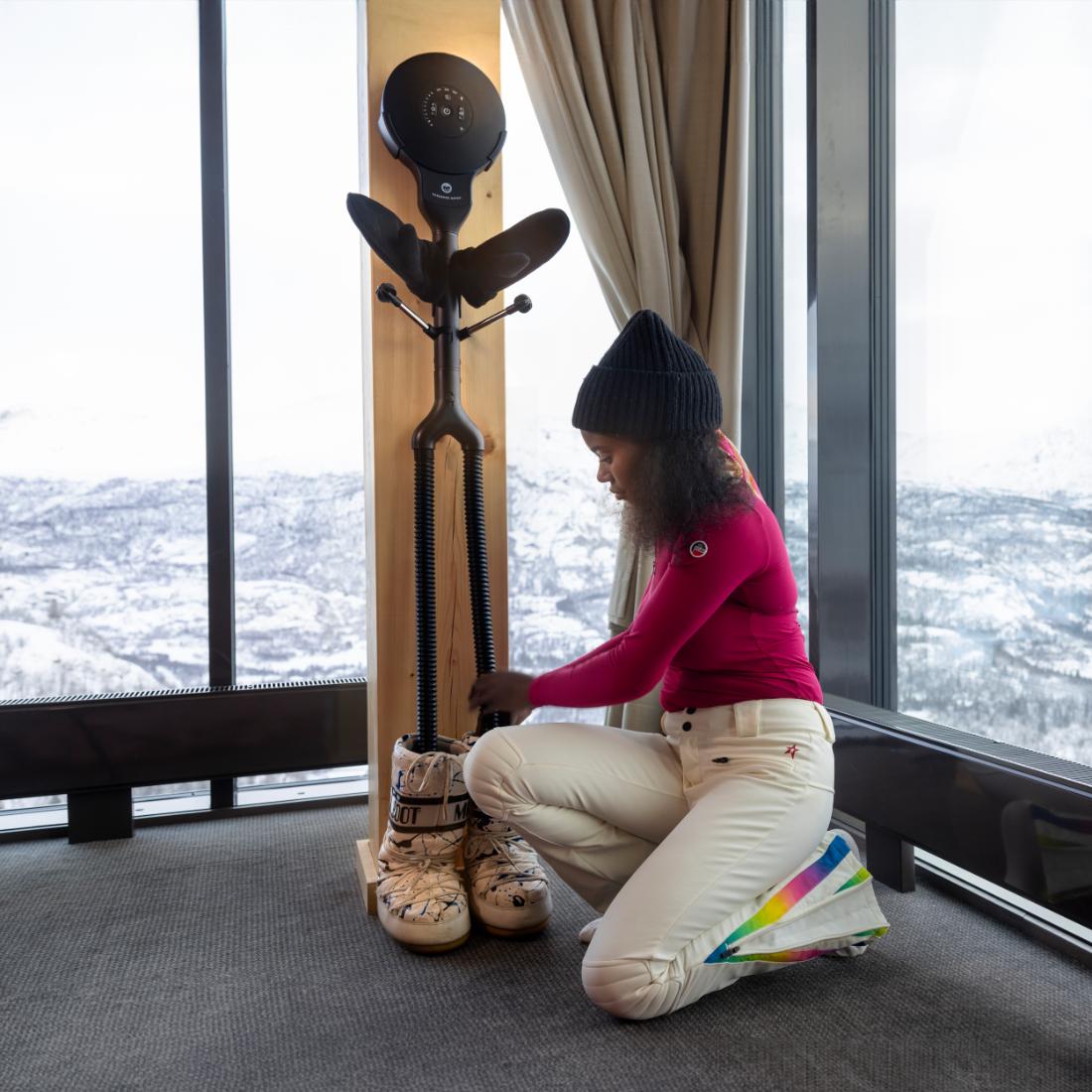 Introducing Hedgehog - the World’s Fastest Dryer. We know that wet boots are messy, cold, and can ruin a great afternoon (or laundry room). Hedgehog fully dries (and warms!) ski boots, hiking boots, gloves, and jackets in minutes - not hours - resulting in many more hours of fun outdoors. The Hedgehog Buddy is perfect for families, drying 2 pairs of gloves, a pair of boots, and more in a matter of minutes. Hang your winter coat on the branches, and you're ready for the outdoors again in minutes.